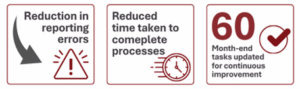 Following our improvements, the client achieved significant enhancements in their month-end reporting process: