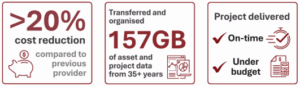 - Transferred and organised 157GB of critical data, preserving 35+ years of engineering knowledge with clear documentation.
