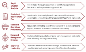 Out-of-control variability in coal clearance and logistics was significantly reduced, restoring consistency in production.