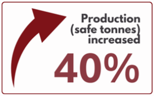Production output improved significantly, with a 40% increase in safe tonnes produced within 3 months, demonstrating both efficiency gains and enhanced operational control.