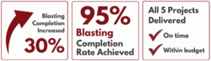 Through the leadership, expertise and engagement of the Xenco team, the five projects were delivered within budget and schedule. Recording of temperature and the development of a site temperature model now allows the mine planning team to better work around hot areas in the drill pattern. Use of the water manifold to reduce hot holes temperatures, has seen site achieve a blasting completion of 95% in August 2020, which represents an increase of 30% compared to last year.